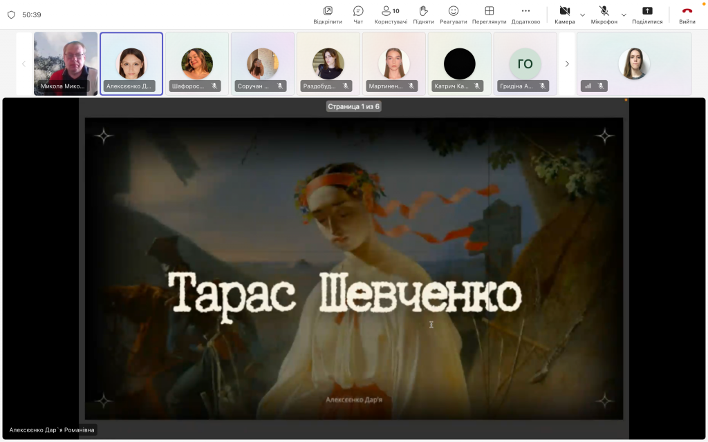 Під час занять здобувачі представили презентаційні виступи, присвячені життю і творчості митця. Доповіді супроводжувалися яскравими ілюстраціями з життя та творчого шляху митця. Особливу увагу було приділено його найвідомішим творам: «І мертвим, і живим, і ненародженим…», «Заповіт» та «Гайдамаки», які стали символами боротьби за свободу та національну гідність. Ці твори відомі далеко за межами України і перекладені багатьма мовами світу.