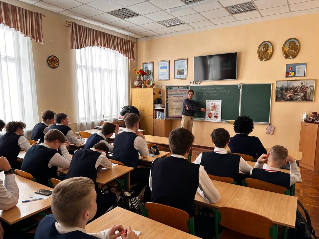 Жвавий інтерес викликала друга частина заходу. Лікарі урологи (аспіранти ОНМедУ) Всеволод Поляков і Кирило Видрін провели окрему бесіду з юнаками. Розмова була відвертою та водночас максимально коректною: хлопці мали змогу ставити запитання анонімно. Такий формат дозволив підняти теми, які зазвичай залишаються поза відкритим обговоренням, але хвилюють підлітків. Учнів цікавили питання фізіології, профілактики захворювань, а також загальні принципи збереження чоловічого здоров’я.