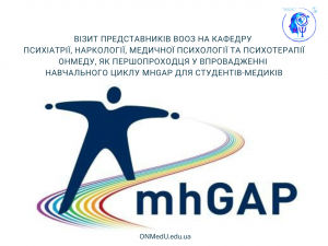 На кафедрі психіатрії, наркології, медичної психології та психотерапії ОНМедУ рік тому було започатковано навчальний цикл, побудований на принципах та клінічних алгоритмах mhGAP.